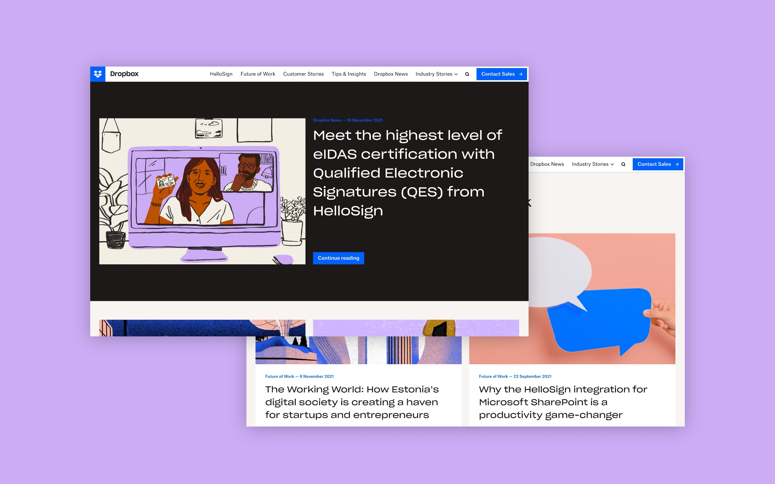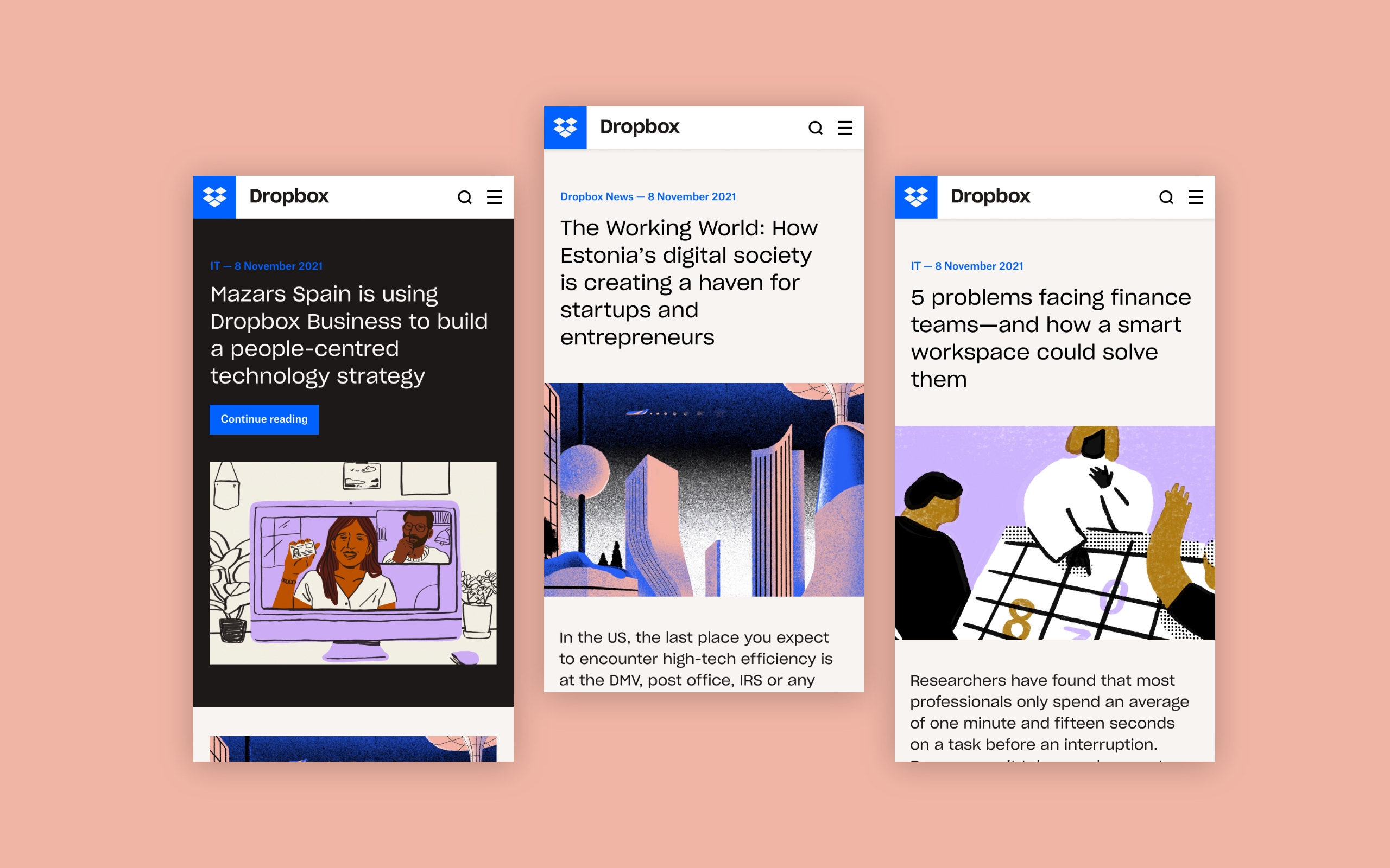 Each blog links to a suitable gated asset providing a logical next engagement – which we create and design – so that the blog also serves as a lead generation engine and an educational tool for Dropbox’s audience.